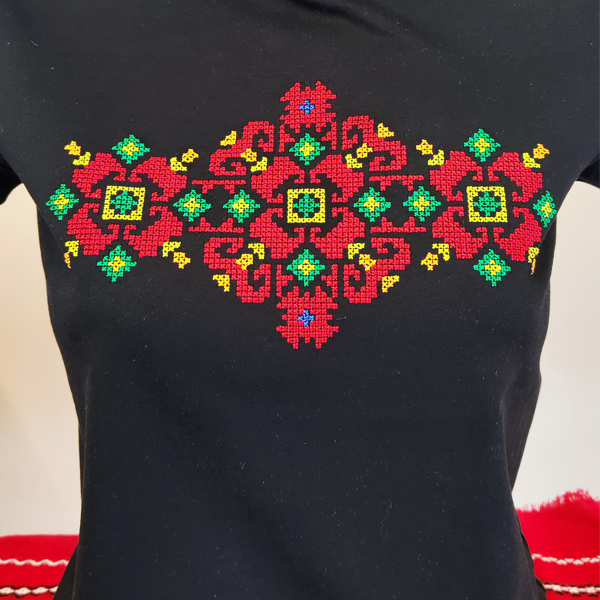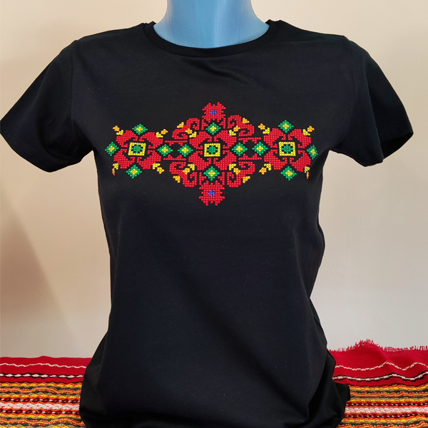 Дамска черна тениска с бродерия