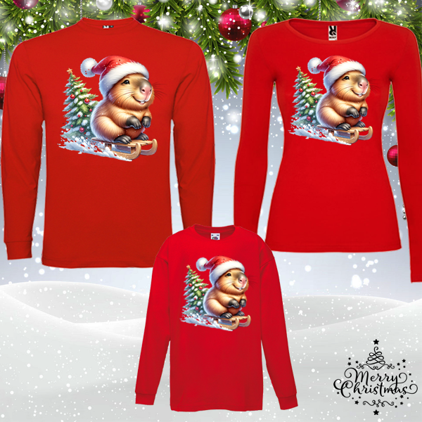Забавен коледен комплект - мъжка блуза, дамска блуза и детска блуза.