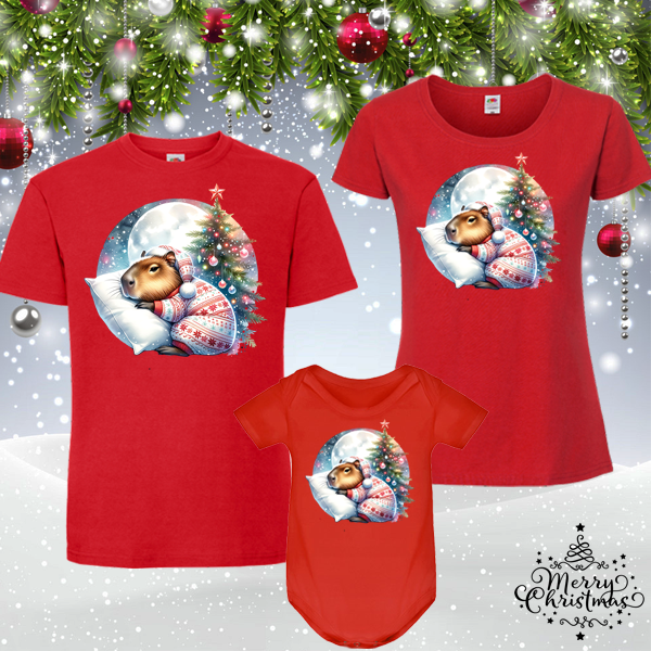 Забавен коледен комплект - мъжка  тениска, дамска тениска и бебешко боди.