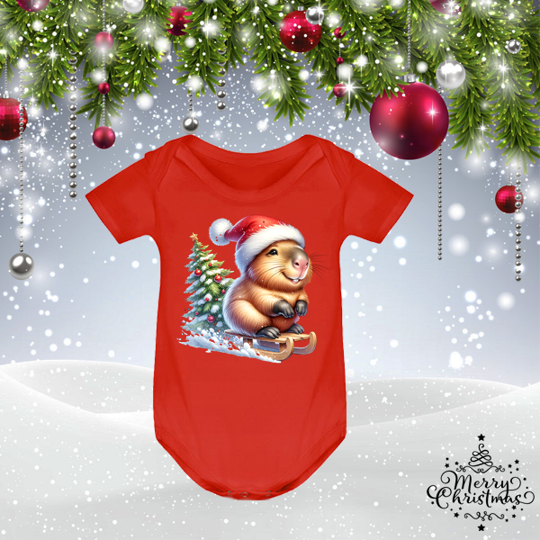 Начало Празници Коледни тениски Бебешки бодита Червено коледно бебешко боди - Капибара