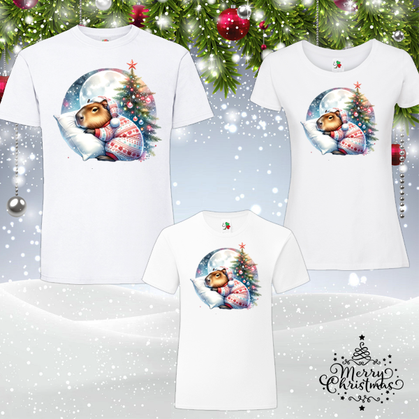 Забавен коледен комплект - мъжка тениска, дамска тениска и детска тениска.