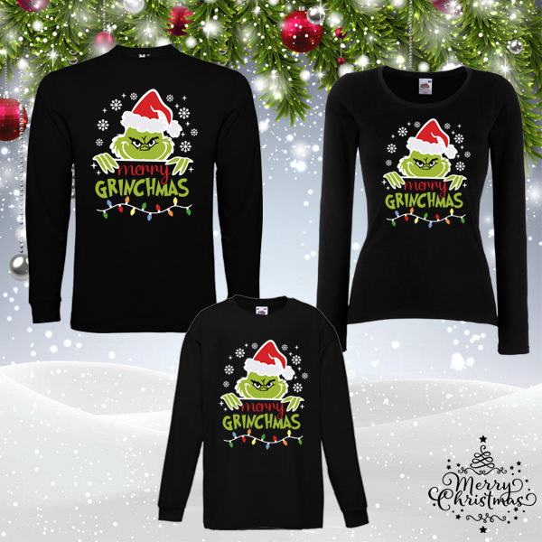 Забавен коледен комплект - мъжка блуза, дамска блуза и детска блуза.