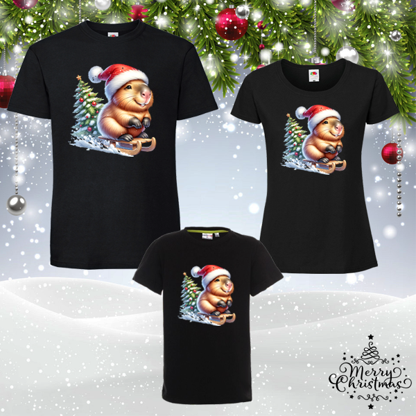 Забавен коледен комплект - мъжка тениска, дамска тениска и детска тениска.