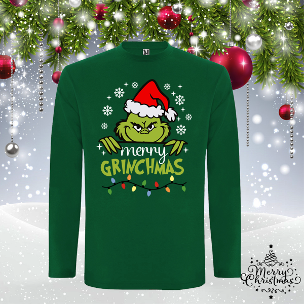 Мъжка зелена коледна блуза- Гринч