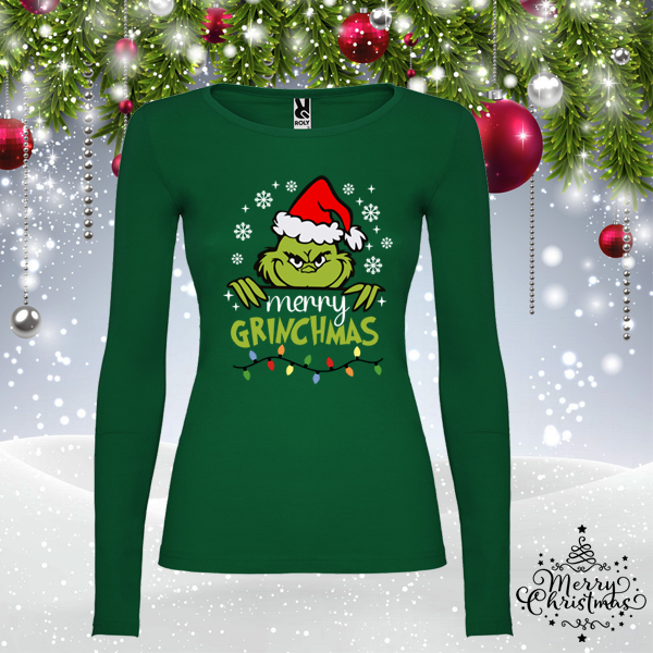 Дамска зелена коледна блуза- Гринч