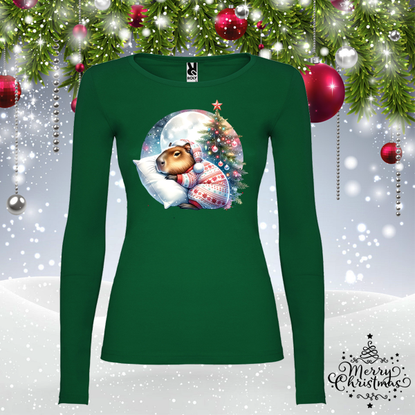 Дамска зелена коледна блуза- Капибара