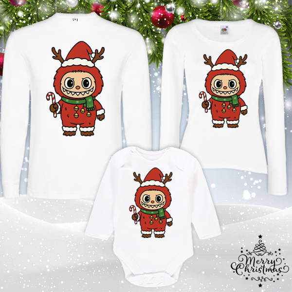 Забавен коледен комплект - мъжка блуза, дамска блуза и бебешко боди.