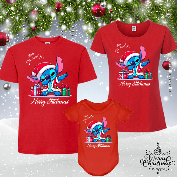 Забавен коледен комплект - мъжка тениска, дамска тениска и бебешко боди.