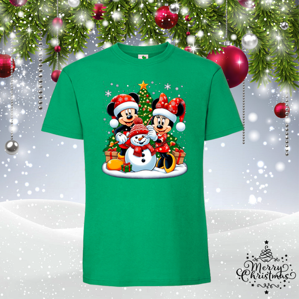 Забавна зелена коледна тениска- Мики и Мини Маус